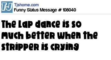 - # 143814 Sometimes I think, "Screw this, I will just be a stripper." Then I remember I am fat and I can't dance.