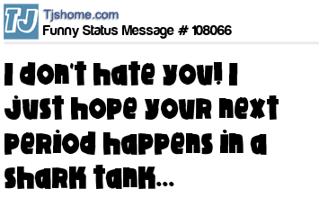- # 95519 I don't hate you. I just hope your next period happens in a shark tank! (".)