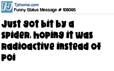 - # 108097 Just got bit by a spider, hoping it was radioactive instead of poisonous.