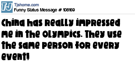 X China has really impressed me in the Olympics. They use the same person for every event!
