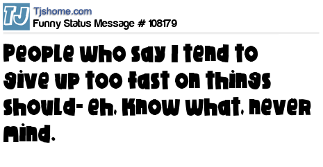 X says People who say I tend to give up too fast on things should- eh, know what, never mind.