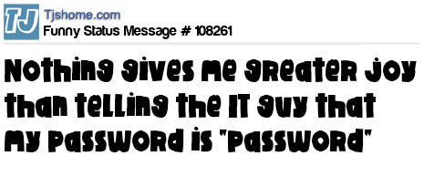 X says Nothing gives me greater joy than telling the IT guy that my password is "password"