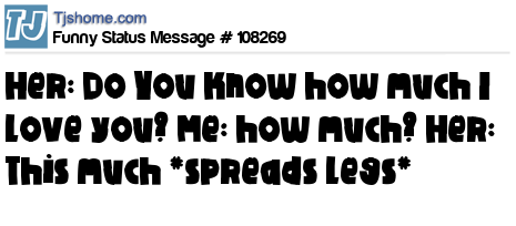 X says Her: Do You know how much I love you? Me: how much? Her: This much *spreads legs*