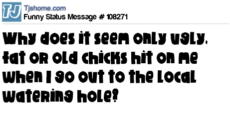 X says Why does it seem only ugly, fat or old chicks hit on me when I go out to the local watering hole?