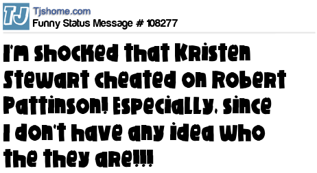 X says I'm shocked that Kristen Stewart cheated on Robert Pattinson! Especially, since I don't have any idea who the they are!!!