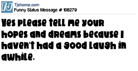 X says Yes please tell me your hopes and dreams because I haven't had a good laugh in awhile.
