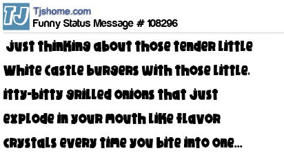 X is just thinking about those tender little White Castle burgers with those little, itty-bitty grilled onions that just explode in your mouth like flavor crystals every time you bite into one...