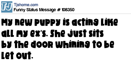 X says My new puppy is acting like all my ex's. She just sits by the door whining to be let out.