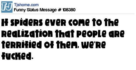 X says If spiders ever come to the realization that people are terrified of them, we're fucked.