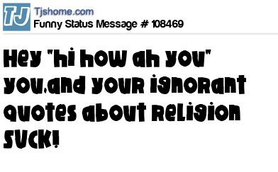 X is Hey "hi how ah you" you,and your ignorant quotes about religion SUCK!