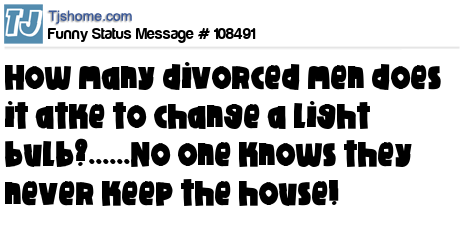 - # 134996 How many divorced guys does it take to change a lightbulb?...........Who cares, they NEVER get the house anyways.