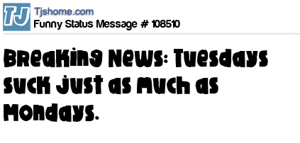 X Breaking News: Tuesdays suck just as much as Mondays.