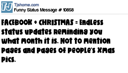 X says FACEBOOK + CHRISTMAS = Endless status updates reminding you what month it is. Not to mention pages and pages of people's Xmas pics.