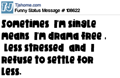 X is Sometimes “I'm single” means “I'm drama free”, “less stressed” and “I refuse to settle for less.”