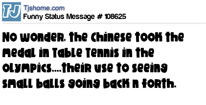 X is No wonder, the Chinese took the medal in Table Tennis in the olympics....their use to seeing small balls going back n forth.