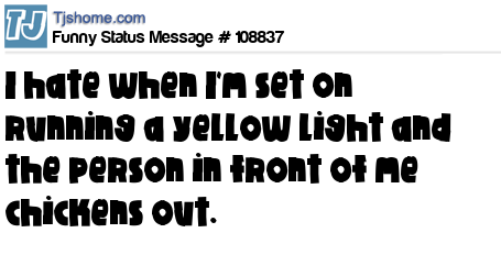 X I hate when I'm set on running a yellow light and the person in front of me chickens out.