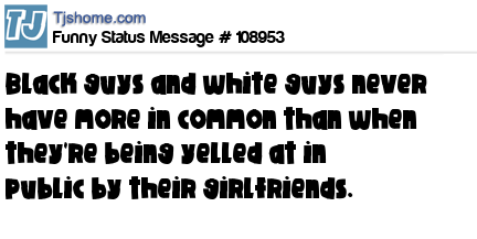 X  Black guys and white guys never have more in common than when they're being yelled at in public by their girlfriends.