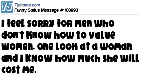 X says I feel sorry for men who don't know how to value women. One look at a woman and I KNOW how much she will cost me.