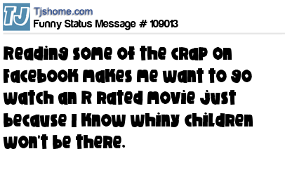 X says Reading some of the crap on Facebook makes me want to go watch an R rated movie just because I know whiny children won't be there.