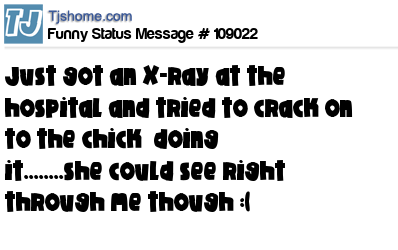 X Just got an X-ray at the hospital and tried to crack on to the chick doing it........she could see right through me though :(