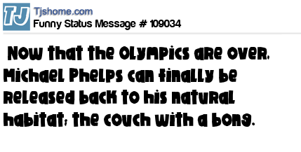 X is Now that the Olympics are over, Michael Phelps can finally be released back to his natural habitat; the couch with a bong.