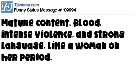 X is Mature content. Blood, intense violence, and strong language. Like a woman on her period.