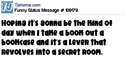X says Hoping it's gonna be the kind of day when I take a book out a bookcase and it's a lever that revolves into a secret room.