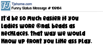 X says It'd be so much easier if you ladies wore @nal beads as necklaces, that way we would know up front you like ass play.