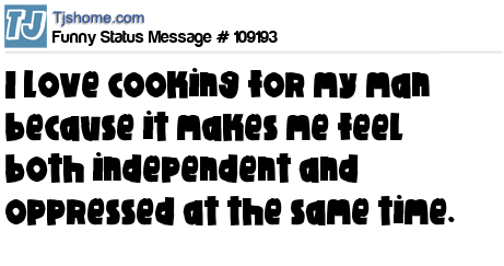 X says I love cooking for my man because it makes me feel both independent and oppressed at the same time.