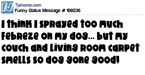 X  I think I sprayed too much Febreze on my dog... but my couch and living room carpet smells so dog gone good!