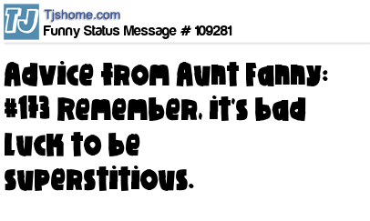 X says Advice from Aunt Fanny: #173 Remember, it's bad luck to be superstitious.