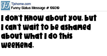 - # 111474 I can't wait to be ashamed of what I do this weekend