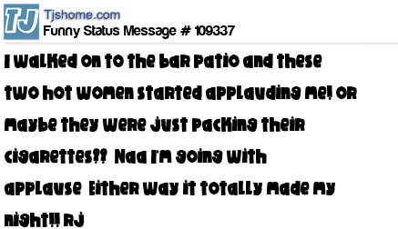 X is I walked on to the bar patio and these two hot women started applauding me! or maybe they were just packing their cigarettes?? Naa I'm going with applause Either way it totally made my night!! rj
