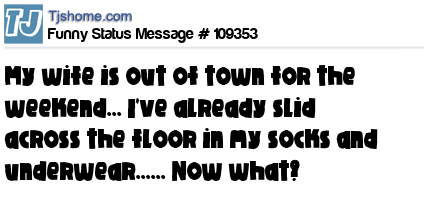 X My wife is out of town for the weekend... I've already slid across the floor in my socks and underwear...... Now what?