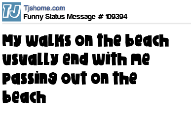 X says My walks on the beach usually end with me passing out on the beach
