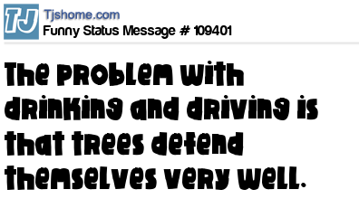 X says The problem with drinking and driving is that trees defend themselves very well.