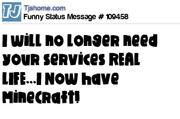X is I will no longer need your services REAL LIFE...I Now have MineCraft!