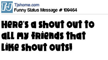 - # 69041 I absolutely HATE when people use song lyrics as their status! It makes me wanna SHOUT! Kick my heels back and SHOUT! Throw my arms up and SHOUT! Throw my head back and SHOUT!