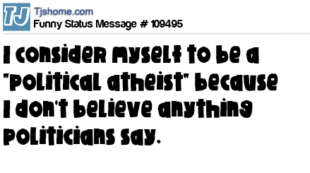X I consider myself to be a "political atheist" because I don't believe anything politicians say.