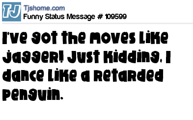 X I've got the moves like jagger! Just kidding, I dance like a retarded penguin.