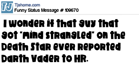 X says I wonder if that guy that got "mind strangled" on the Death Star ever reported Darth Vader to HR.