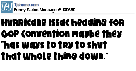 - # 109646 Republican convention next week.... Hurricane Isaac is predicted to hit Florida next week.... Even Mother Nature doesn't like Republicans.