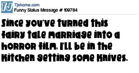 X says Since you've turned this fairy tale marriage into a horror film, I'll be in the kitchen getting some knives.