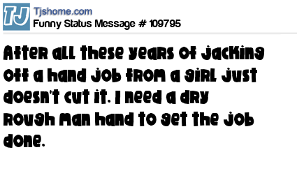 X says After all these years of jacking off a hand job from a girl just doesn't cut it. I need a dry rough man hand to get the job done.