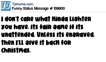 X says I don't care what kinda lighter you have, its fair game if its unattended. Unless its engraved, then I'll give it back for Christmas.