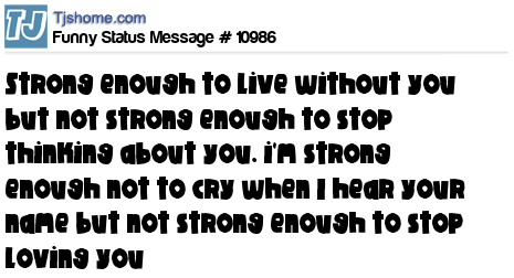 X is strong enough to live without you but not strong enough to stop thinking about you. i'm strong enough not to cry when I hear your name but not strong enough to stop loving you