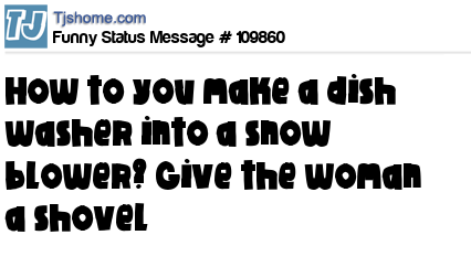 X is How to you make a dish washer into a snow blower? Give the woman a shovel
