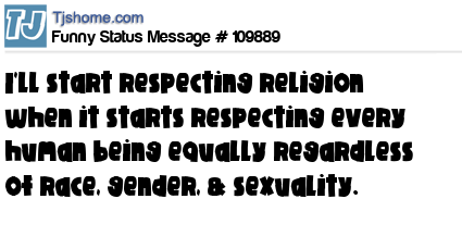 X I'll start respecting religion when it starts respecting every human being equally regardless of race, gender, & sexuality.