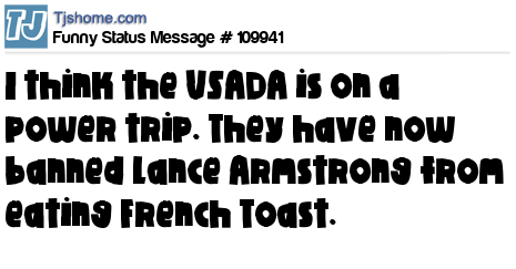 X says I think the USADA is on a power trip. They have now banned Lance Armstrong from eating French Toast.