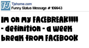 X is Im on my FACEBREAK!!!! - definition - a week break from FACEBOOK